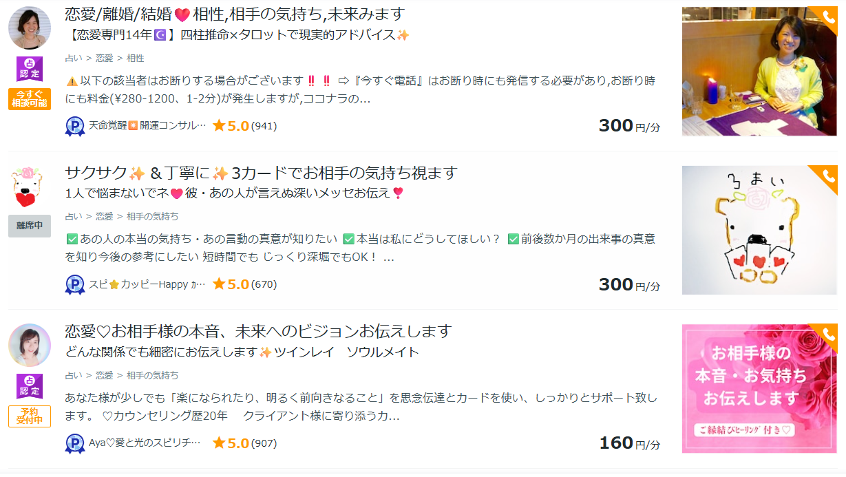 ココナラの電話占いは、