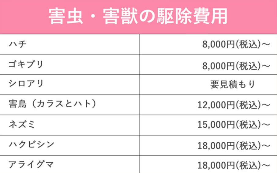 | 害獣BUZZ | 自社施工 | 22,000円〜 | 業者により異なる | ◎ | 害獣全般 |